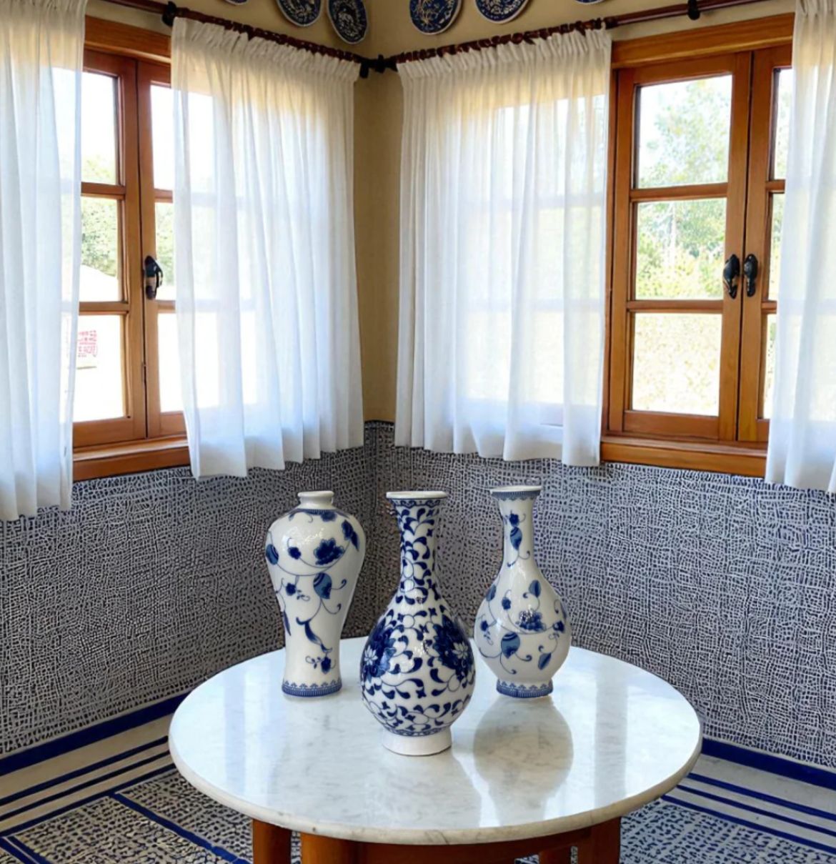 These Miniature Indigo Trio Hand Painted Porcelain Vases showcase exquisite craftsmanship with detailed indigo designs, perfect for adding refined elegance to any space. Their compact size makes them ideal for tabletop displays or as a delicate accent in curated collections. Each vase's unique hand-painted finish ensures a one-of-a-kind artistic touch, blending traditional techniques with modern aesthetics.