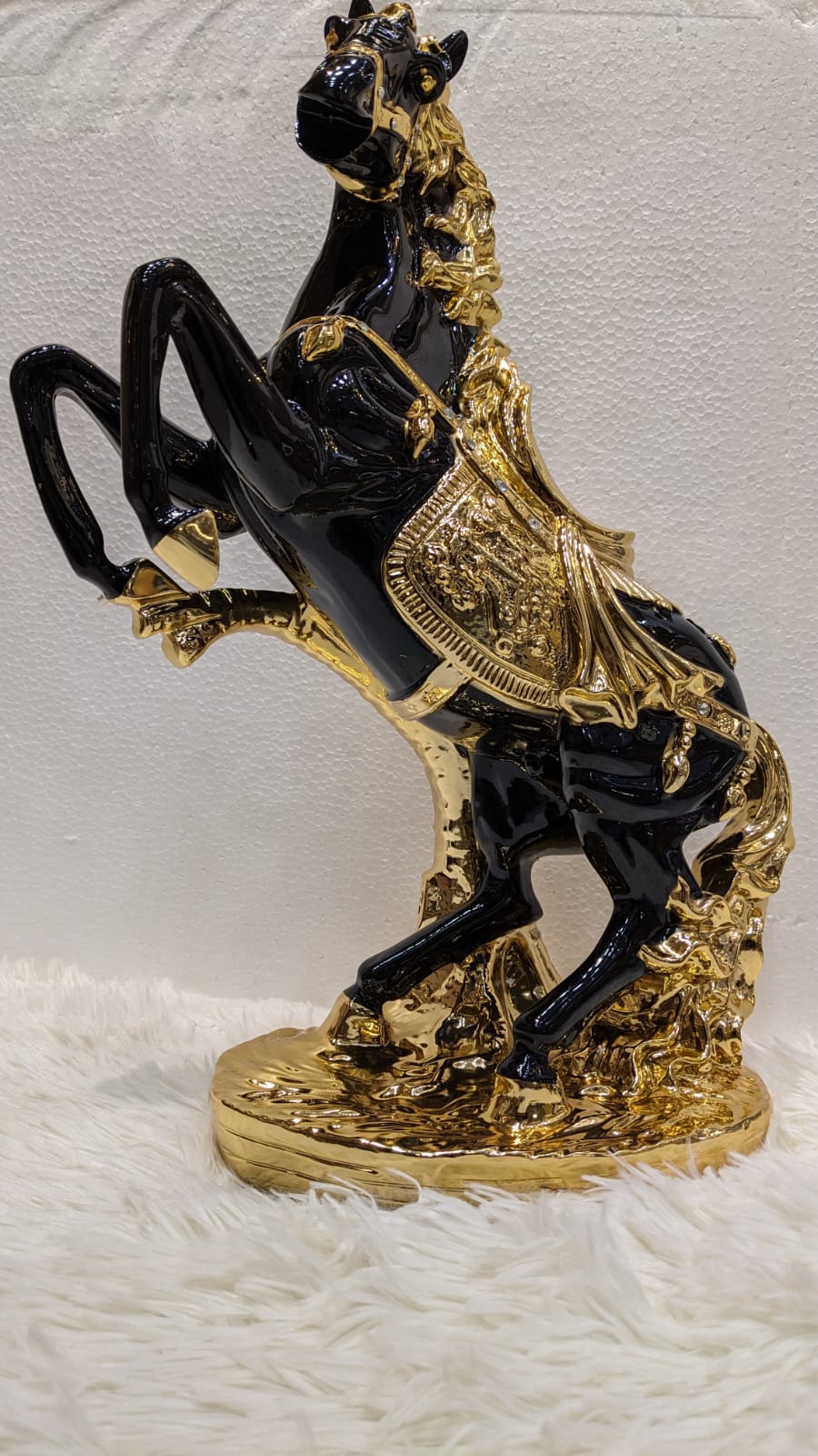 This exquisite Royal Horse Large Sculpture "26" combines intricate design and expert craftsmanship to create an elegant and majestic piece. Made from high-quality materials, this sculpture is sure to make a statement in any space. With its grand size and attention to detail, it is perfect for those who appreciate fine art and equine beauty.