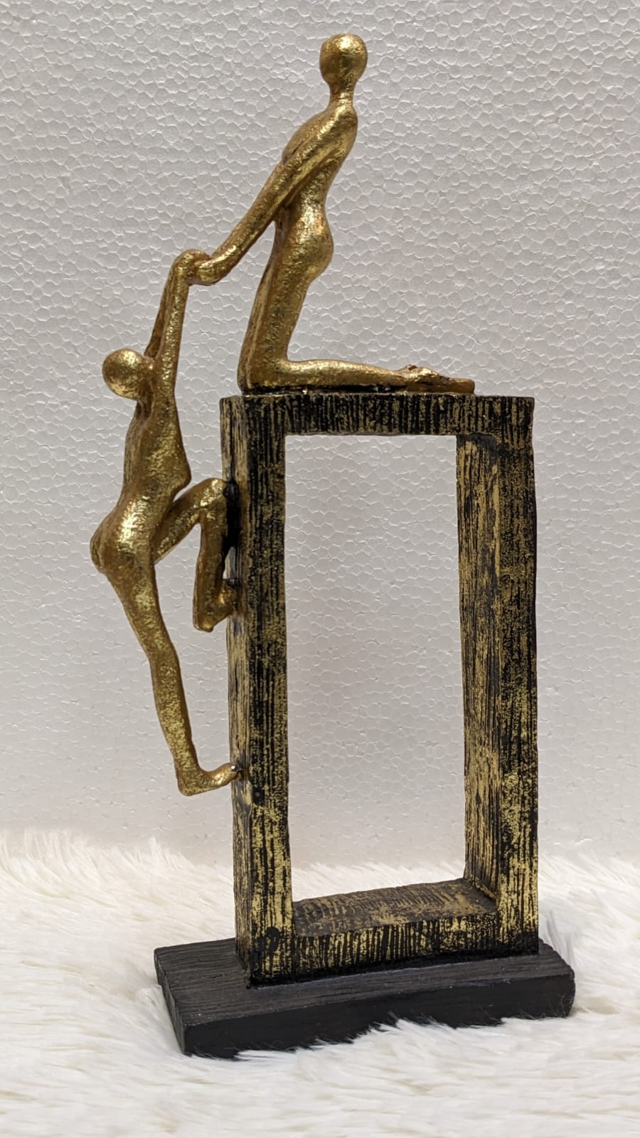 A powerful representation of unity and strength, this elegant sculpture captures two stylized figures in a moment of mutual support—one reaching down, the other climbing up. Crafted with a bronze-like finish and rich texture, it symbolizes teamwork, perseverance, and human connection. A meaningful decor piece for desks, shelves, or office spaces, it serves as both an artistic accent and a daily reminder of resilience and collaboration.
